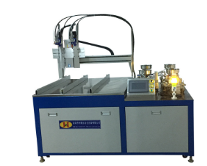 黄瓜视频污版在线观看工作原理:AB组份分开自动吸入料桶内,自动将AB料抽真空除气泡,通过计量泵分别计量,自动按配比出来后自动混合定量将混合后的胶水打入产品。